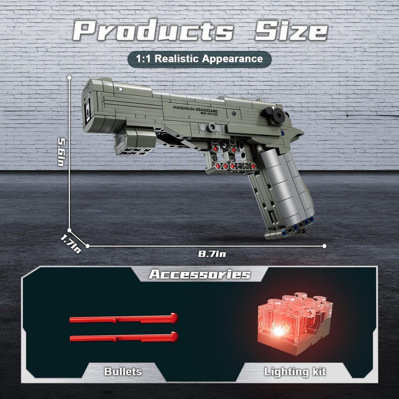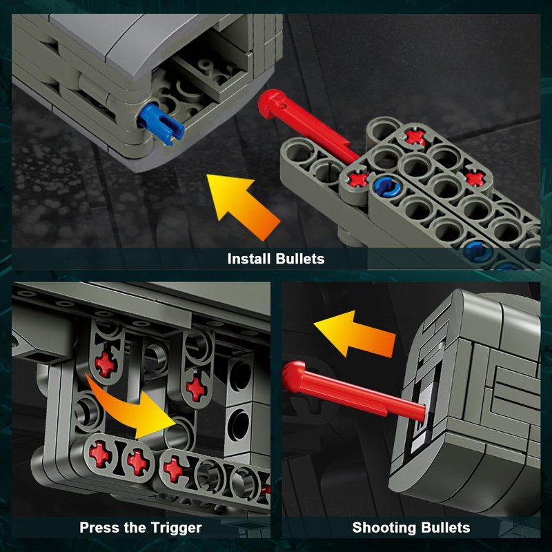 - Realistic Design: It includes grip, trigger, muzzle, aim, slider, clip and bullet. Equipped with launch props, the building kit can simulate the shooting action of real objects,bringing military charm and unlimited fun for you.