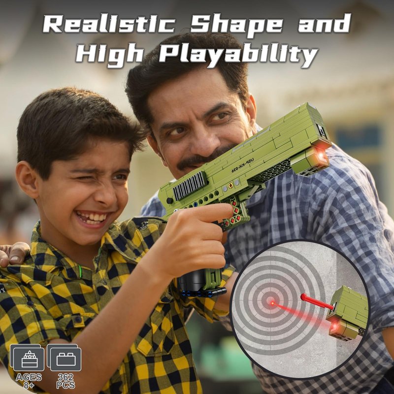 - Realistic Design: It includes grip, trigger, muzzle, aim, slider, clip and bullet. Equipped with launch props, the building kit can simulate the shooting action of real objects,bringing military charm and unlimited fun for you.