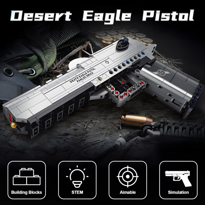 Finger Rock Gun Building Sets for Adults, 1:1 Simulation Shooting Toy Desert Eagle Pistol Model Building Blocks Kit, Rifle Weapon Collectible Gift for Military Enthusiasts, Kids Boys 14+ (360 pcs)