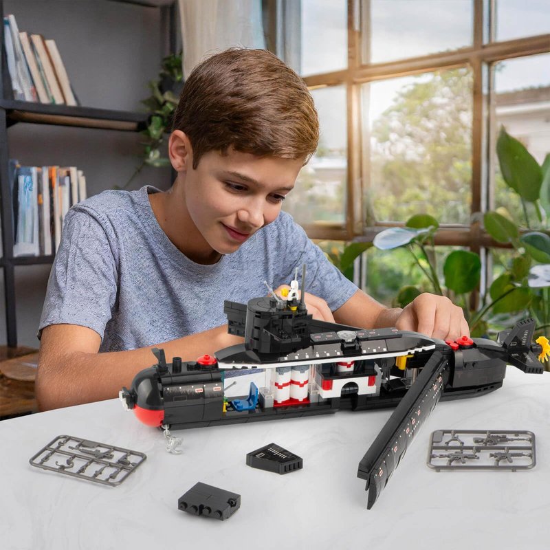 - 【Interesting and Educational】The assembled model helps to recognize the structure of nuclear submarine toys. This military nuclear submarine building blocks can help your child innovate, create new, interesting, and unique ideas. It can also be used as a classroom, office or room display. It is also very collectible model toy if you are interested in WW2 toys