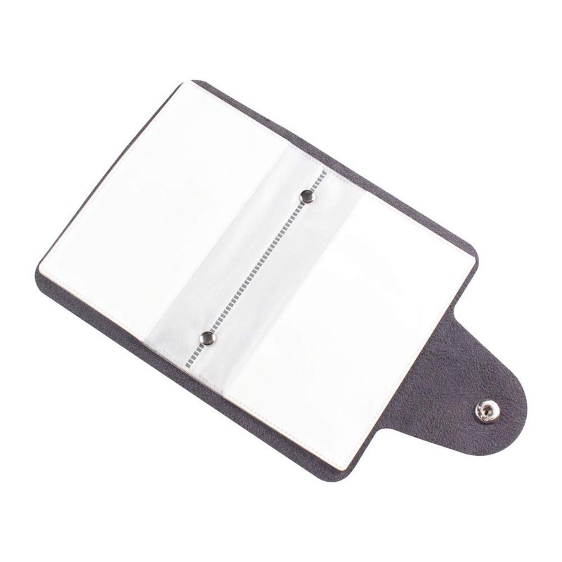 Qty: 1Pcs Color: Synthetic leather in Black Slot Size: 6.0cm x 13.3cm Style: 10 double-side pages Capacity: Each case has 20 slots Page Finish: Matte, see-through vinyl pages