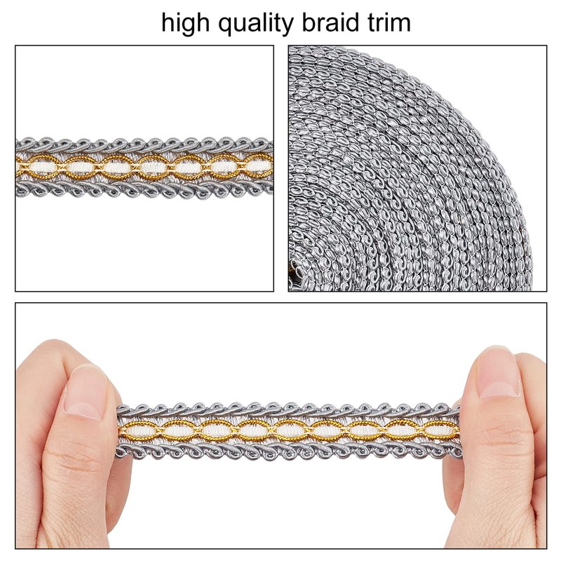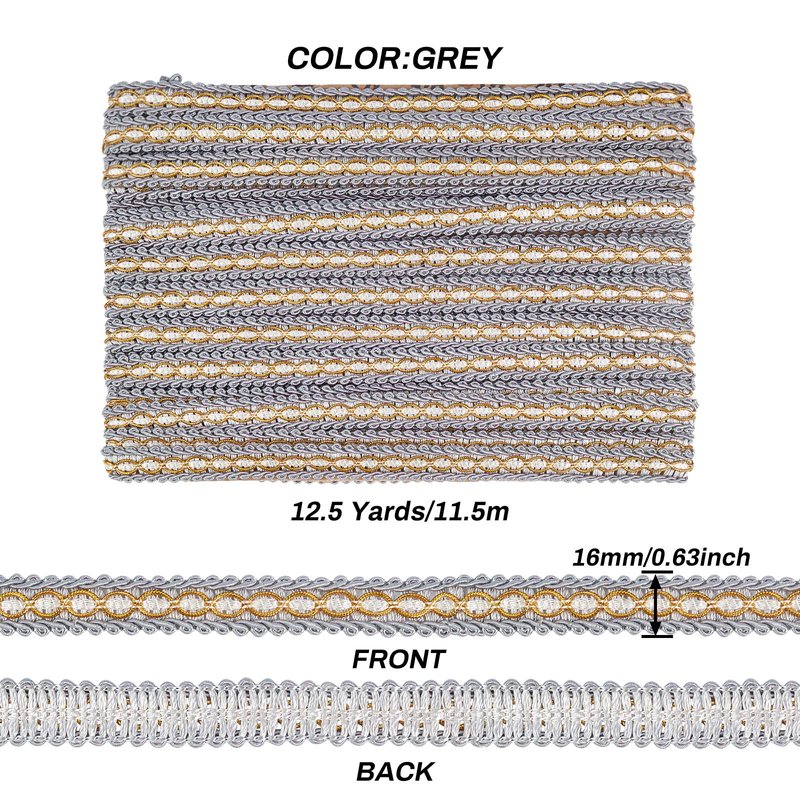 • [What You Get]: about 11.5m(12.5 yards)/card Gray gimp braid trim, Polyester Ribbon, Fringe Trimming, Costume Accessories.