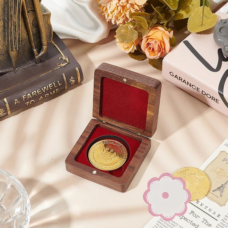 FINGERINSPIRE Single Wood Challenge Coin Presentation Display Gift Box with Dark Red Velvet Inside 40mm Coin Storrage Box Magnetic Clasp Medal Display Case Commemorative Coin Holders for Collectors