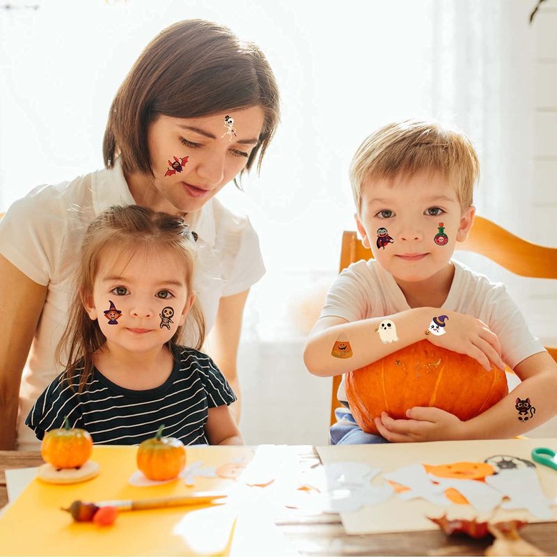 - Classic Halloween Themed Tattoo:Including but not limited to pumpkins,bats,witches,black cats,skeletons,snowmen,tombstones,ghosts,eyeballs and witch soup,add Halloween interesting atmospher for kids adult