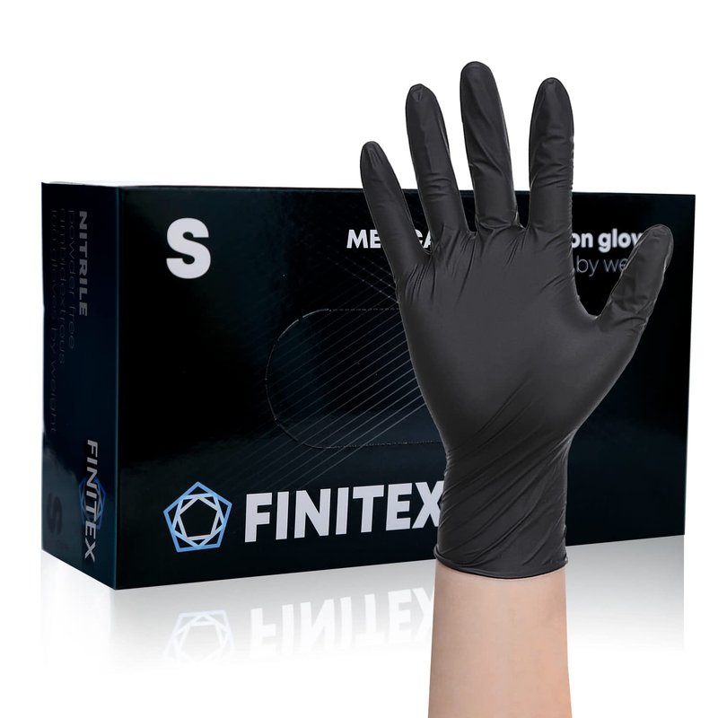 FINITEX - Black Nitrile Disposable Gloves, 5mil, Powder-free, Medical Exam Gloves Latex-Free 100 PCS For Examination Home Cleaning Food Gloves (Small)