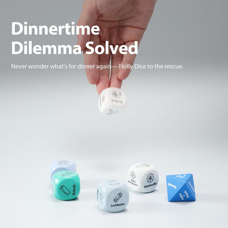 - Fun Decision Maker: Tired of the endless back-and-forth about what to eat? The Fiolly Dice Game takes the guesswork out of mealtime decisions. Simply roll the dice and let fate choose your next delicious meal. It's a playful and stress-free way to decide what's for dinner.