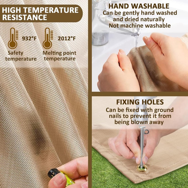- Washable and Reusable: Our fire pit mats have excellent sewing and sealing edges, which are very durable and not easy to scatter. The wear-resistant and wrinkle resistant material makes it can be easily cleaned by hand wash. Tip: It is recommended that you hand wash your fire pit mat and dry it naturally, do not use a washing machine or dryer.