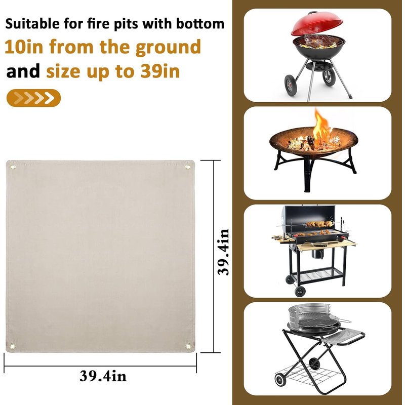- Perfect Size: The size of our fire pit mats is 39.4''× 39.4'', the big size is sufficient to meet your thermal protection needs. Our foldable fire blanket can be organized well in the storage bag, which is portable to carry. And there are holes in the corners of the fire pit mat to hold it firmly in place with ground nails to prevent it from being blown away by high winds.