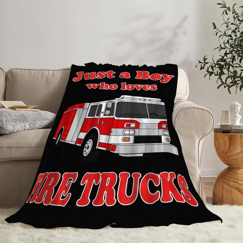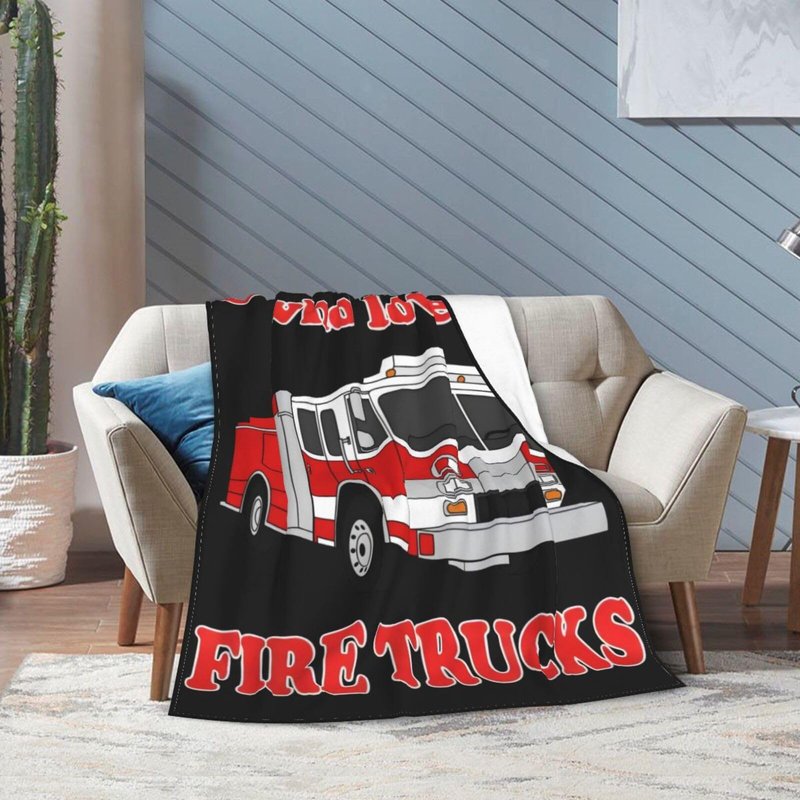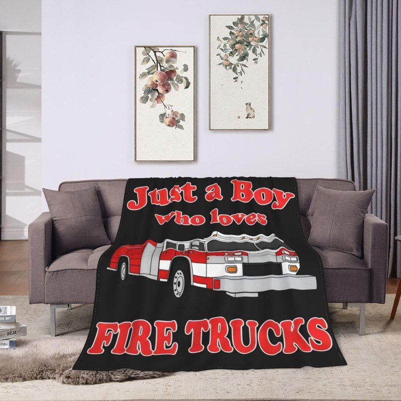 Fire Truck Blanket Soft Cozy Fire Engines Throw Blanket Gift for Boys Super Plush Warm Just a Boy Who Loves Fire Trucks Stuff Lightweight Fleece Flannel Gift Blankets for Kids Adults 50"X40"