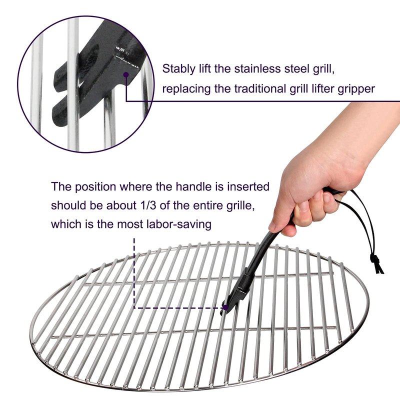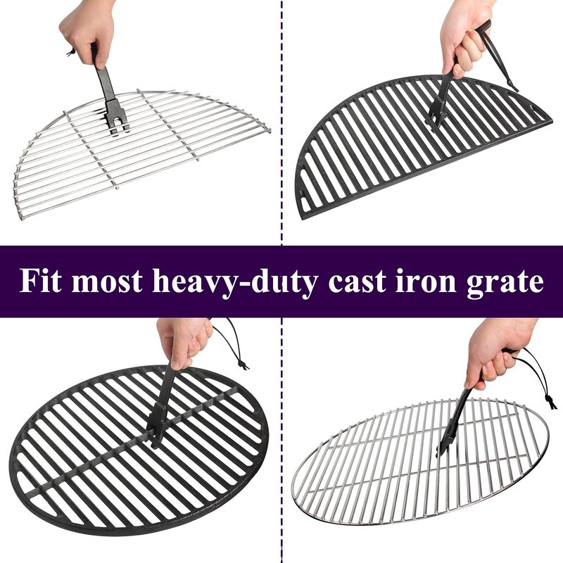 - CAST IRON GRID LIFTER:The grid lifter made of cast iron more tough and durable,not easily deformed or rust.Specially made for heavy duty cast iron grill grate,able to withstand heavy weight without distortion.