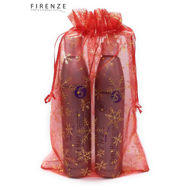 Firenze Professional Color Protection Bundle - Silver Hair Shampoo and Conditioner Pack with Free Red Gift Bag, Pack of 3