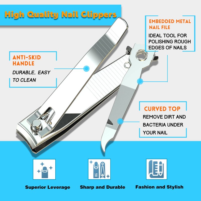 - Best Nail Trimmer:The nail clippers sets use comfortable ergonomic shape to lever, and the curved edge follows the natural shape of the nail. Make every use smooth and simple, suitable for all kinds of nails.