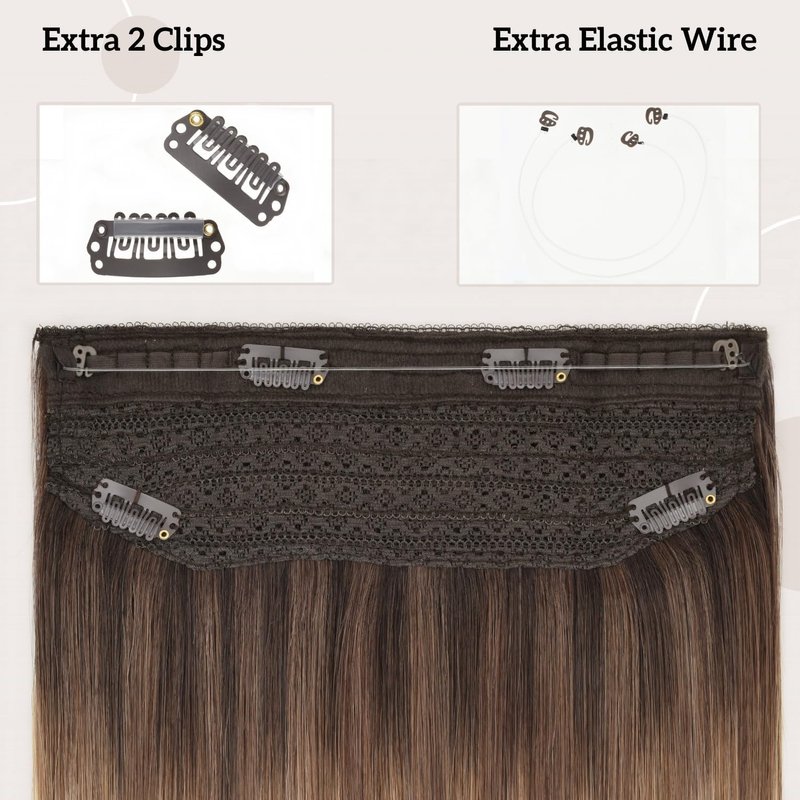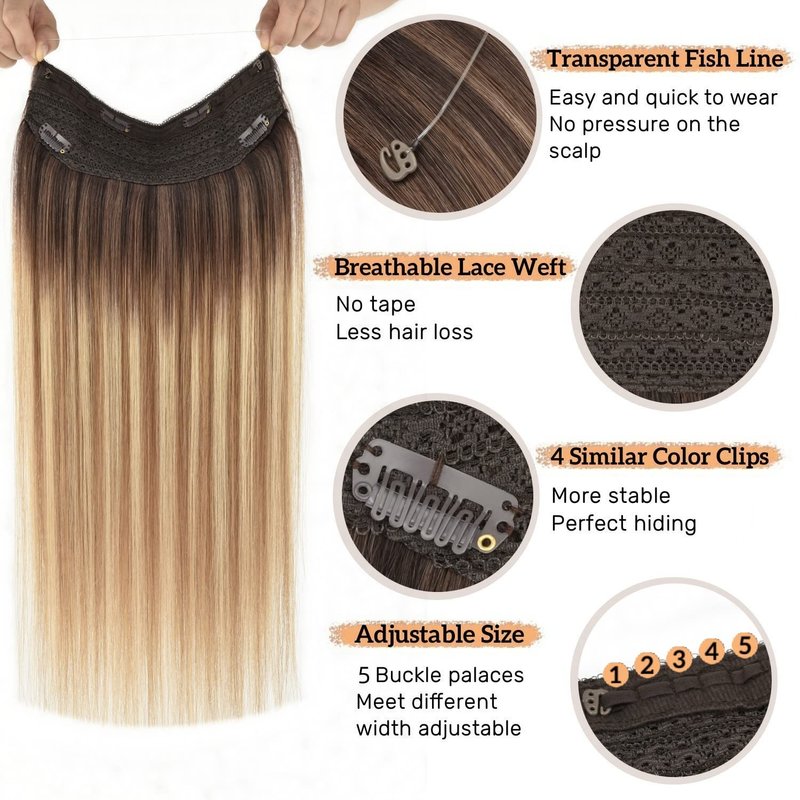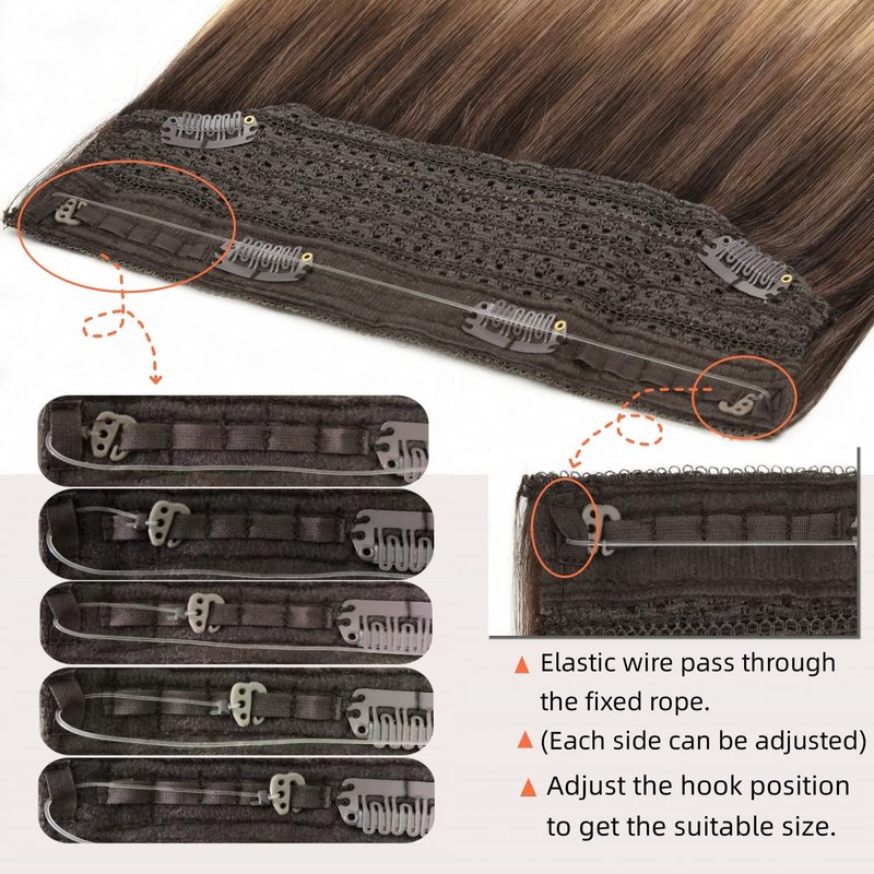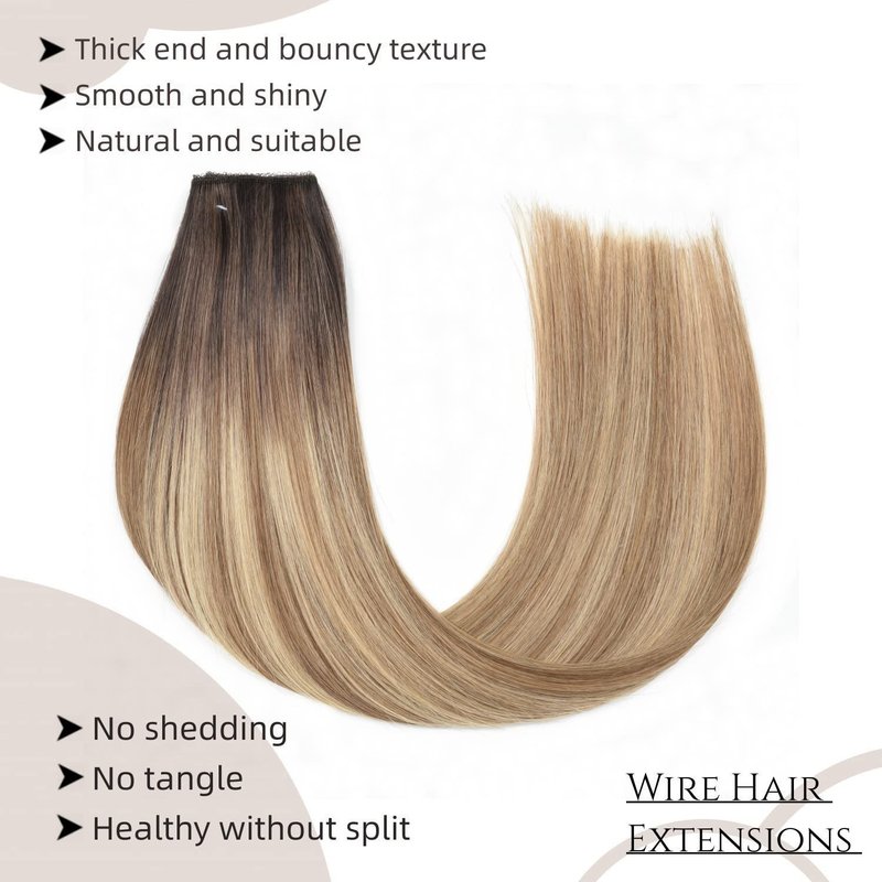 - ♥【Easy to Wear】 Wire Hair extensions Human Hair come with a wire that is super easy to apply and remove.You can add volume and length to your hair less than 5 Minutes. No tape or chemicals to harm your hair.The invisible transparent wire can be adjusted to fit your head size perfectly ,4 clips on the lace weft,hair doesn't move when you shake your head, so you can wear it confidently.