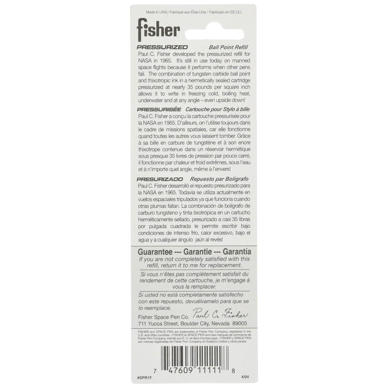 - Each Fisher Space Pen is precision assembled, hand tested, and carries a lifetime guarantee against all manufacturing defects