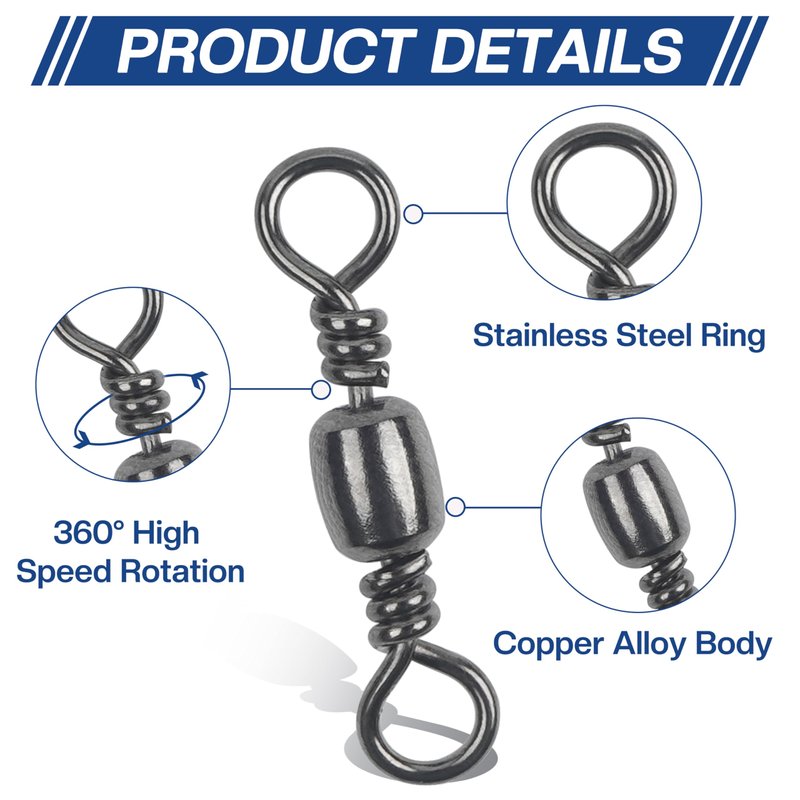 • HIGH QUALITY: Fishing swivels are made of solid copper and stainless steel with black nickle coated, durable