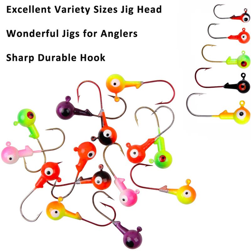 - EASY TO USE: Fishing lures ball head jigs are built in barb for easy bait attachment, constructed with pointed hooks, increase your chances to catch more bigger fishes. (Note: Some eyelet maybe be painted, you could poke the eyelet with the hook.)