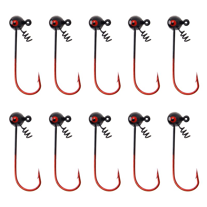 Strong Quality: Strong quality hooks, the extended lure-holder spring makes rigging easy. The flat head and horizontal line tie prompts the jig to stand straight up on bottom. Great for artificial Bait, fishing lure.