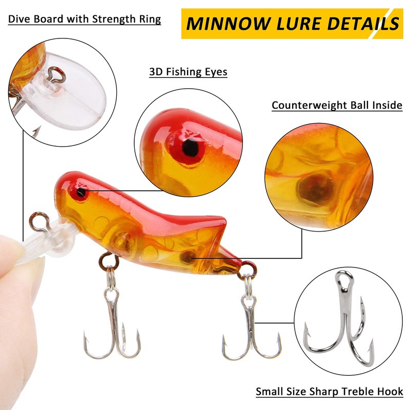 - 【SPECIFICATION】 Length range : Approximately 1.2 - 3 inch. Weight range : Approx. 0.1 - 0.34 oz. All lures are packed in a handy plastic box, convenient to carry. Perfect gift for Christmas, Thanksgiving Day, Valentine's Day, Father's Day, etc