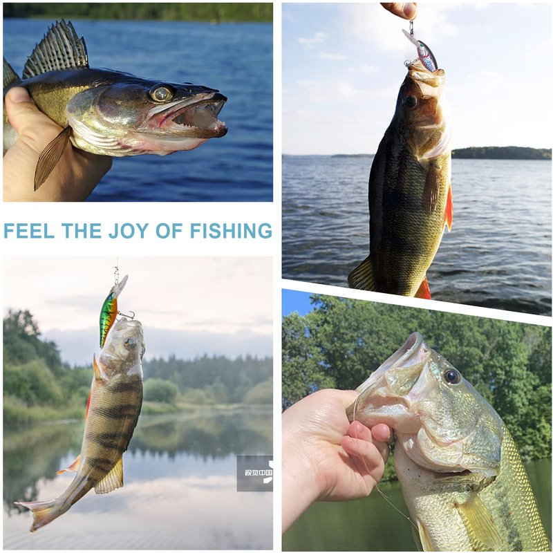 - 【WIDELY APPLICATION】Widely targeting at predator fishes such as perch, crappie, walleye, pike, trout and other various fishes. Perfect for stream, pond, reservoir, river, lake, sea fishing and ocean boat fishing. Great fishing lures for anglers