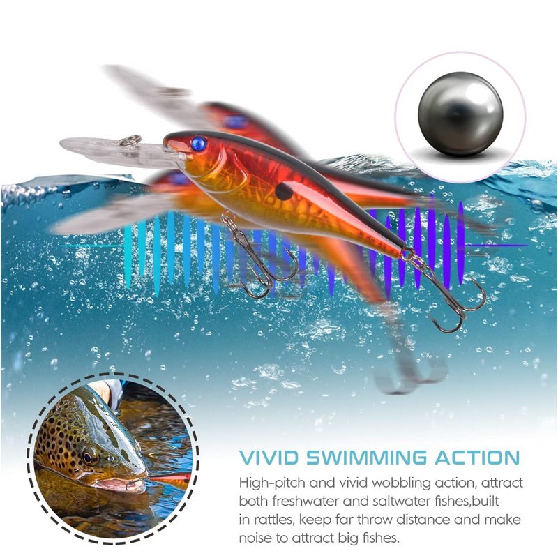 - 【LIFELIKE ACTION】Exquisitely Painted fishing bait ,brilliant colors and pattern, realistic hard fishing lures create life like swimming action in the water to attract predators' attention, fit for saltwater and freshwater