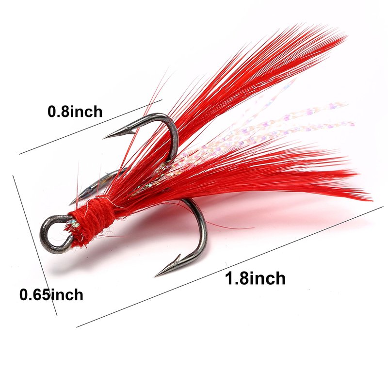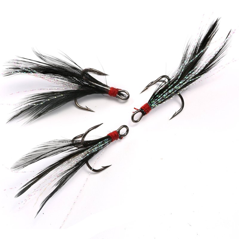 Fishing Round Bend Treble Hooks Black Nickel Hooks with Feather Dressed Fish Baits Tackle Accessory Size 6 50pcs