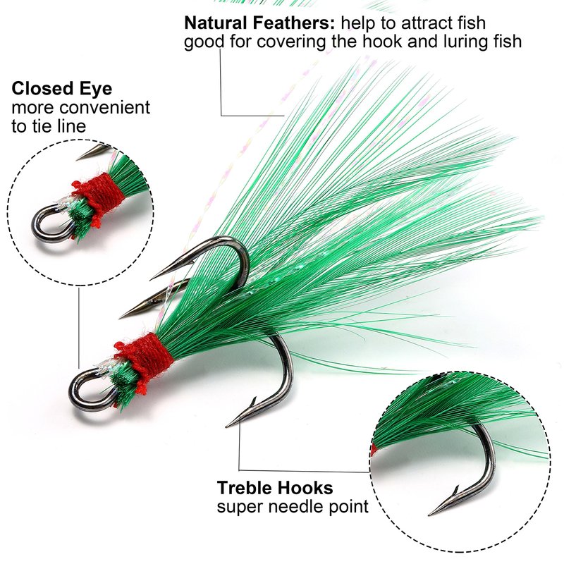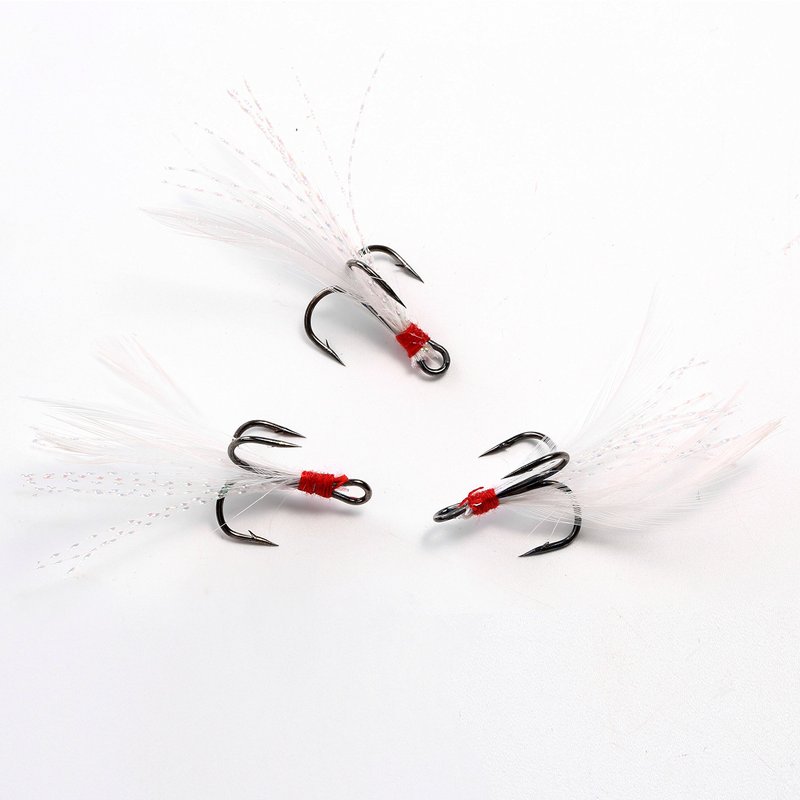 Fishing Round Bend Treble Hooks Black Nickel Hooks with Feather Dressed Fish Baits Tackle Accessory Size 6# 50pcs