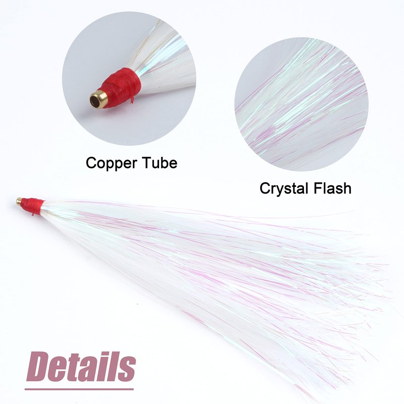 - 【HIGH QUALITY】Mylar flash teaser upgraded with crystal hair and special pearl flash material with brass tube and hardened rim. Strong and duarable for saltwater fishing. Holds up well Even after multiple strikes