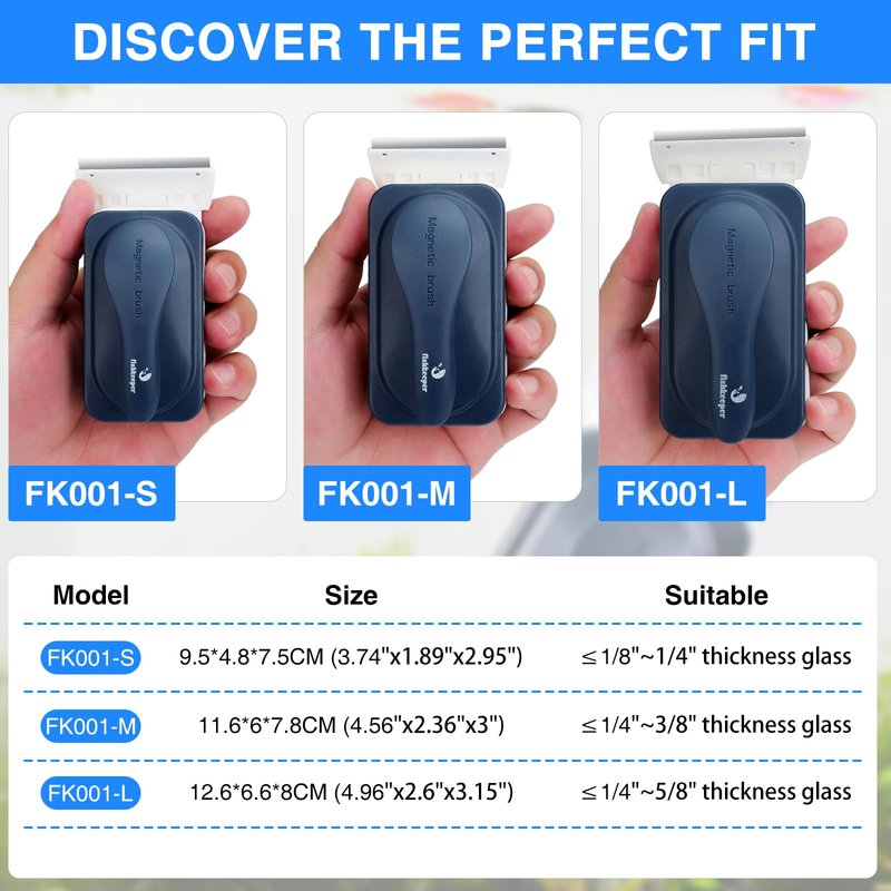 - 🐟🍀Powerful Magnetic Force🐟🍀: Our fish tank magnetic brush features a strong magnetic force that securely adsorbed to tanks without the risk of detachment. Designed to fit aquariums with a thickness of 1/8"~1/4"(0.125-0.25in) inches, whether you're removing stubborn dirt or adjusting aquatic plants, our aquarium glass cleaner stays securely in place, making your cleaning tasks more efficient and effortless.