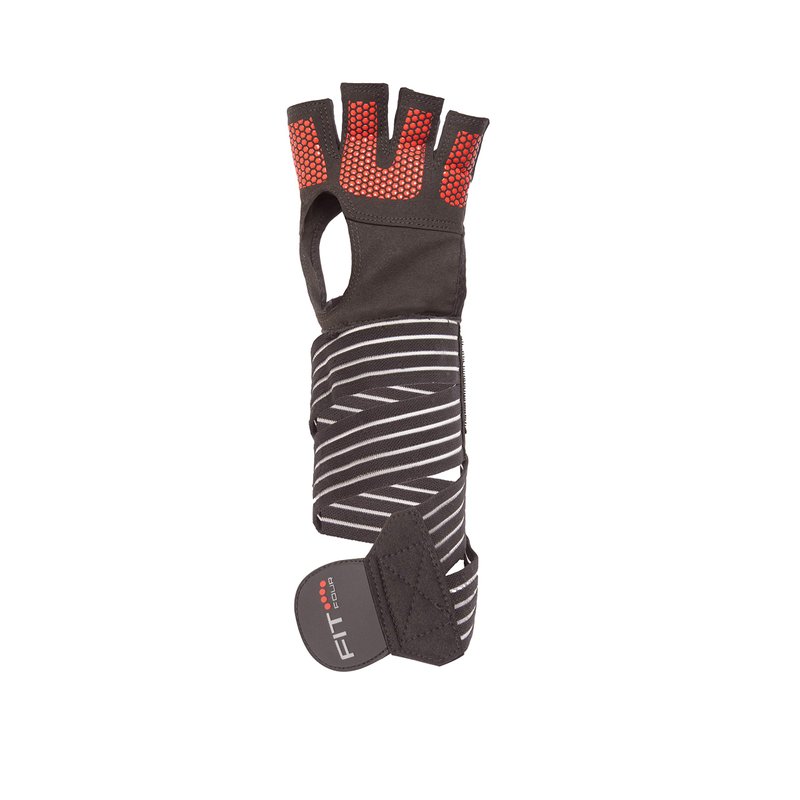 Fit Four OCR Slit Grip Gloves Obstacle Course Racing & Mud Run Hand Protection | Wrist Support with Slit for Fitness Watch (Black/Red, Small)
