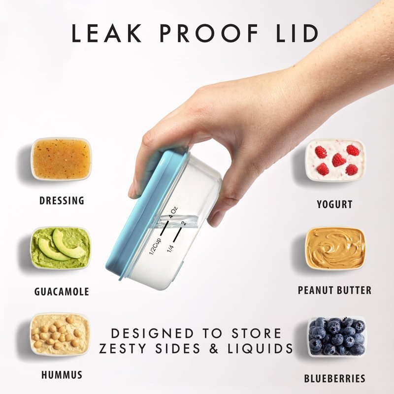 - PERFECT FOR SIDES: Set of five ½ cup containers are perfect for packing dips, dressings, hummus or nuts