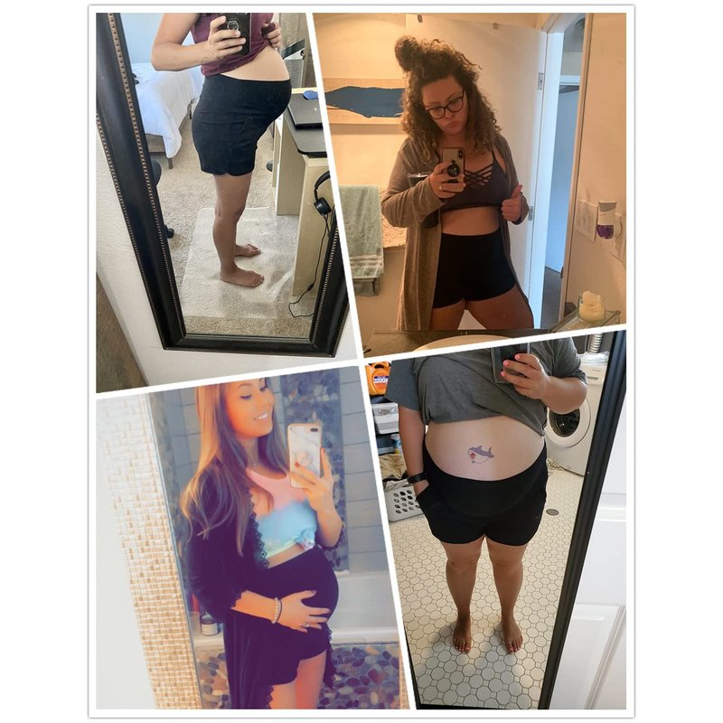 - COMFY, SOFT, AND STRETCHY MATERIAL: Body: 95% Cotton, 5% Spandex. Panel: 95% Rayon, 5% Spandex. These cute maternity shorts give all-day comfort to a pregnant woman. It will stretch as your baby bump grows. Pregnancy must haves.