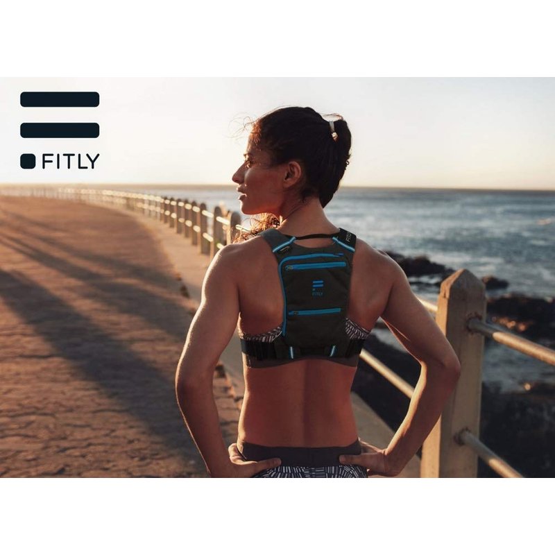 WORLD PREMIERE: the Thoracic Belt System. Two body fitting front pockets that gently stretches to keep all items from ever moving. Your hands naturally swing by your thorax when you run. With FITLY, storing and retrieving a key, a gel, ID, money, etc. while on the run is easy and natural.