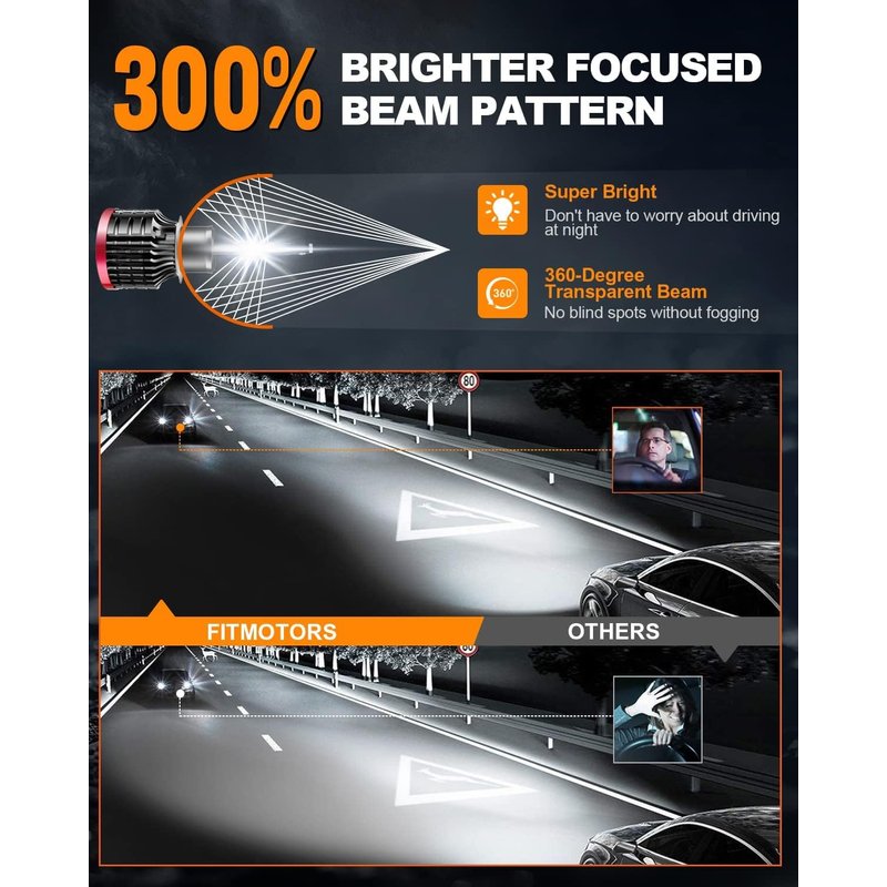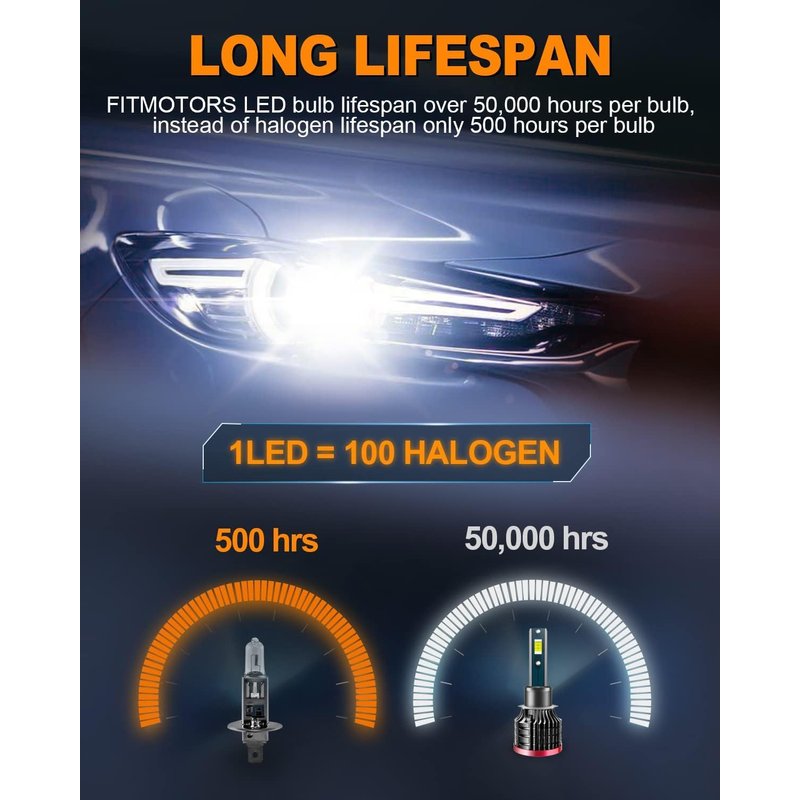 - 【Super Bright and High Performance】- The FITMOTORS H1 LED Bulbs are equipped with top automotive-grade LED chips that provide an impressive output of 80W and 16,000 lumens in total. With a cool white color temperature of 6500K, these bulbs deliver a super bright beam pattern that is 300% brighter than your original halogen bulbs. Experience enhanced visibility and safety on the road.