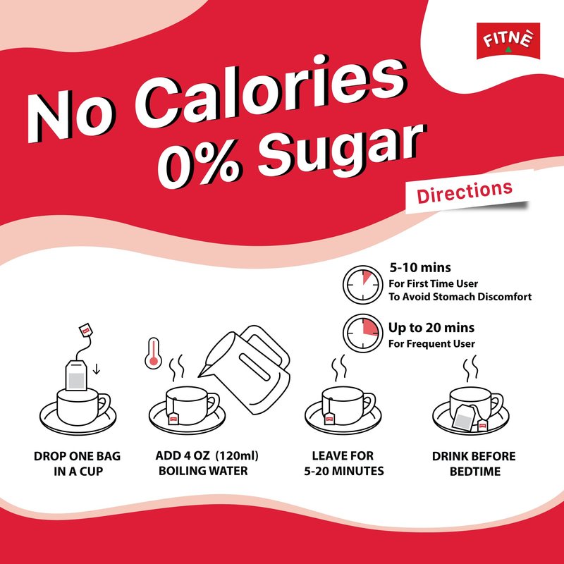 - STRAWBERRY - FITNE herbal infusion tea is filled with 100% unique natural herbs containing Senna Leaves, Strawberry, Chrysanthemum and Stevia. Night cleanse tea with Double-Chamber tea bag ensure quicker and more effective diffusion.