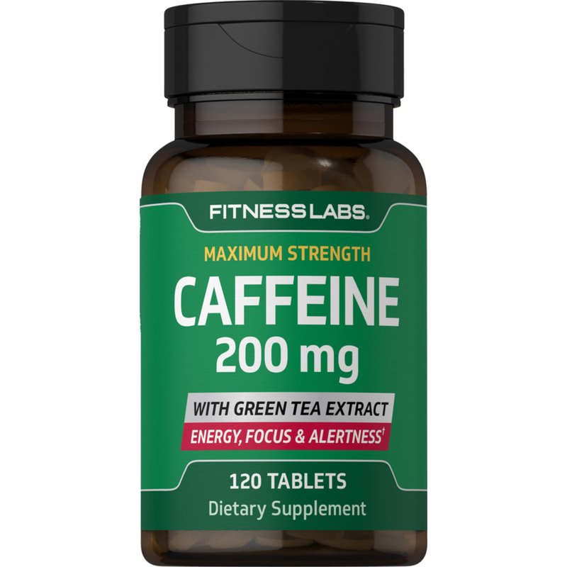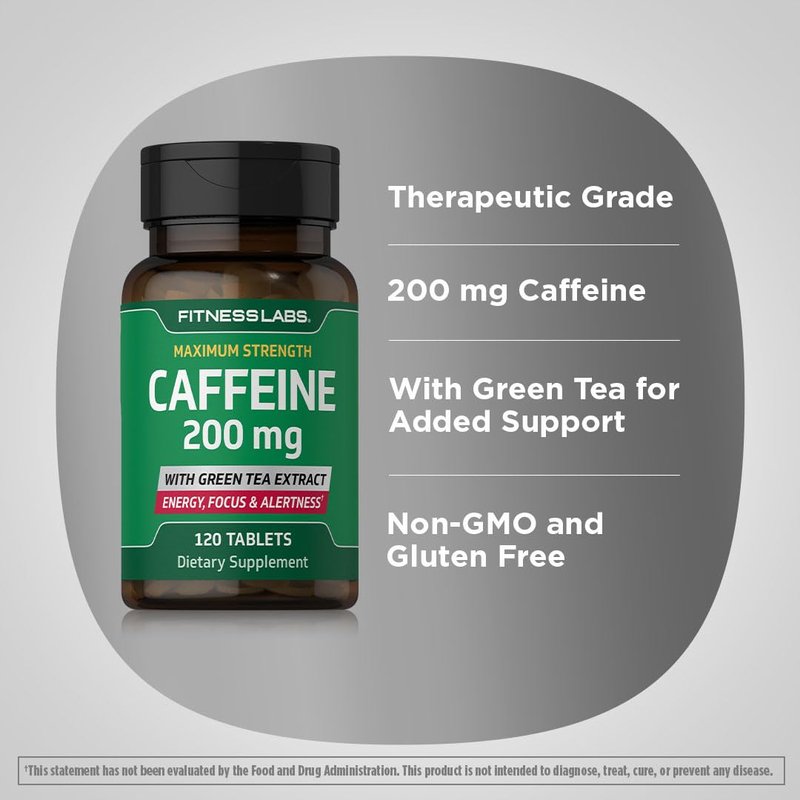 Fitness Labs Caffeine Pills | 200mg | 120 Tablets | with Green Tea Extract | Maximum Strength Supplement | Vegetarian, Non-GMO, Gluten Free