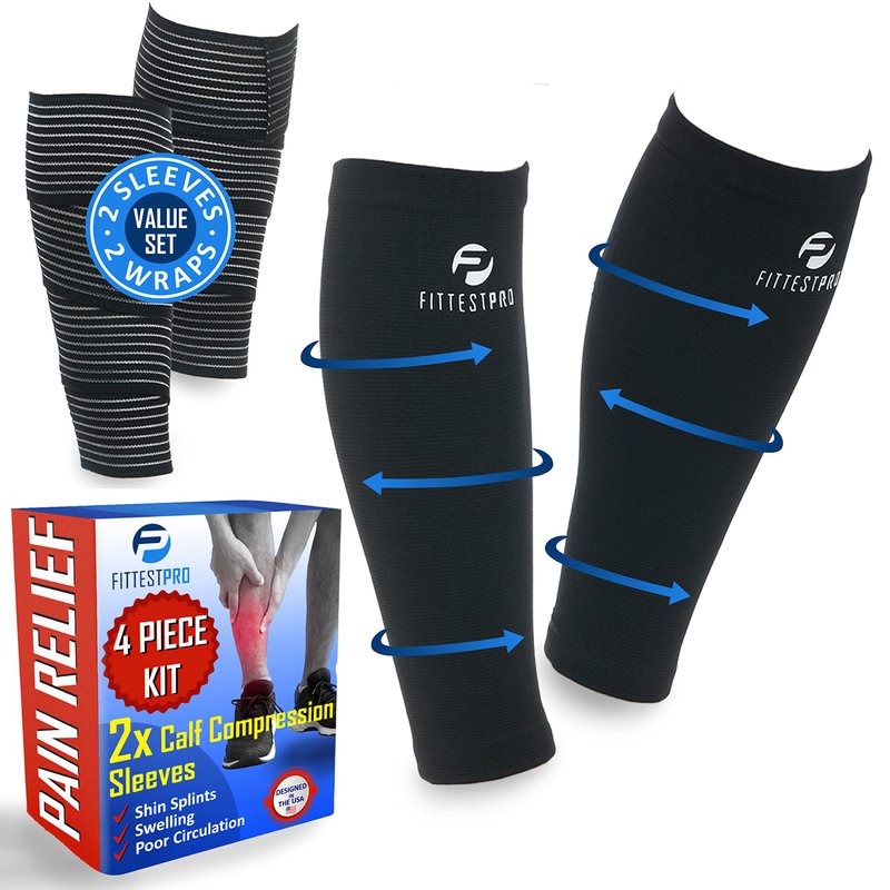 Fittest Pro Calf Compression Sleeves and Leg Wraps for Shin Splint Support, Pain Relief for Running, Basketball, Cycling, Maternity