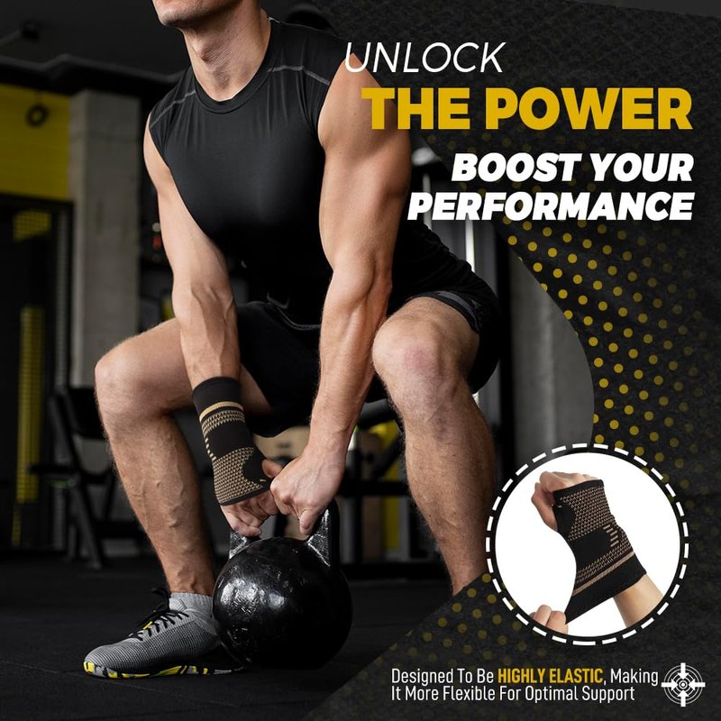 FITTOO Copper Wrist Compression Sleeve, Copper Infused Wrist & Hand Compression Sleeve Brace for Improve Circulation, Relieve Wrist Discomfort,Tendonitis, Sprains, Sports, Gym Workout