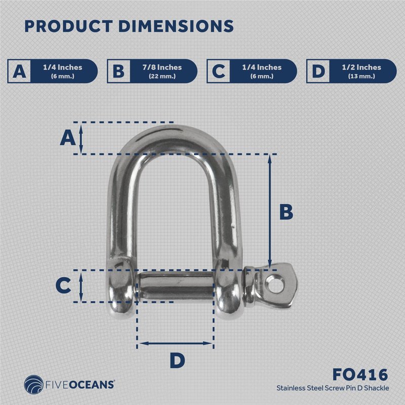 Five Oceans 1/4 Captive Pin Shackles, Stainless Steel Anchor Shackle for Boat, Sailboat FO416