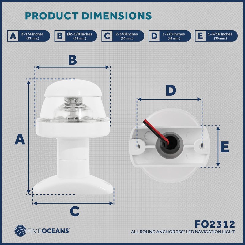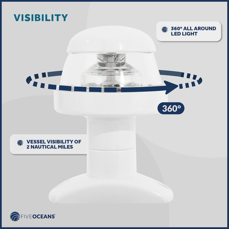 Five Oceans Anchor Light - Stern Lights for Boats, Boat Lights Navigation,12V DC, USCG Rules 2NM, 3 1/4 Inch Fixed Mount, Boat Stern Light for Pontoon, Fishing Boats, Bass Boats, Sport Boats - FO2312