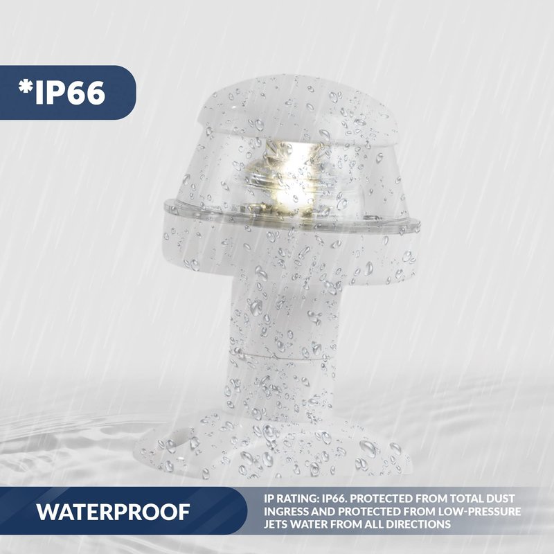 Waterproof Led Stern Light: IP Rating: 66. The circuit board of this boat rear light comes completely sealed to resist water, corrosion, and vibration. Boat stern light LED design avoids short circuit damage from moisture.