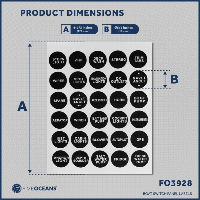 Five Oceans Boat Switch Panel Labels, Marine Boat Dash Board Instruments Decal, Rocker Switch Circuit Panel Sticker, 30 Pcs per Sheet, for Boats, RVs, Caravans - FO3928