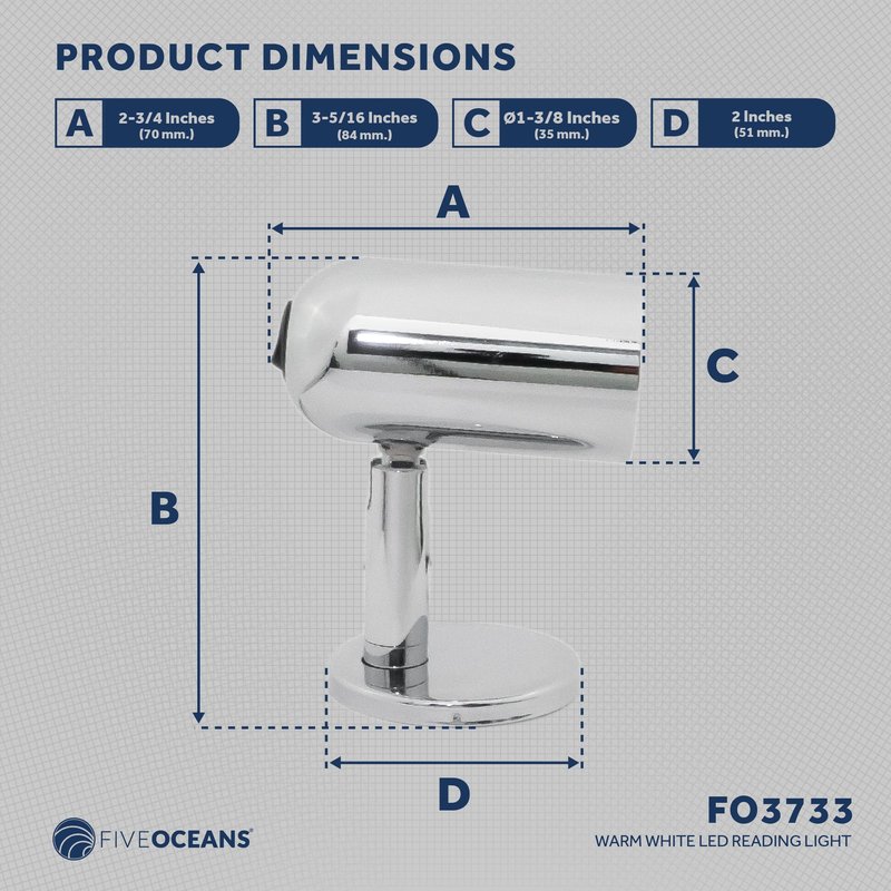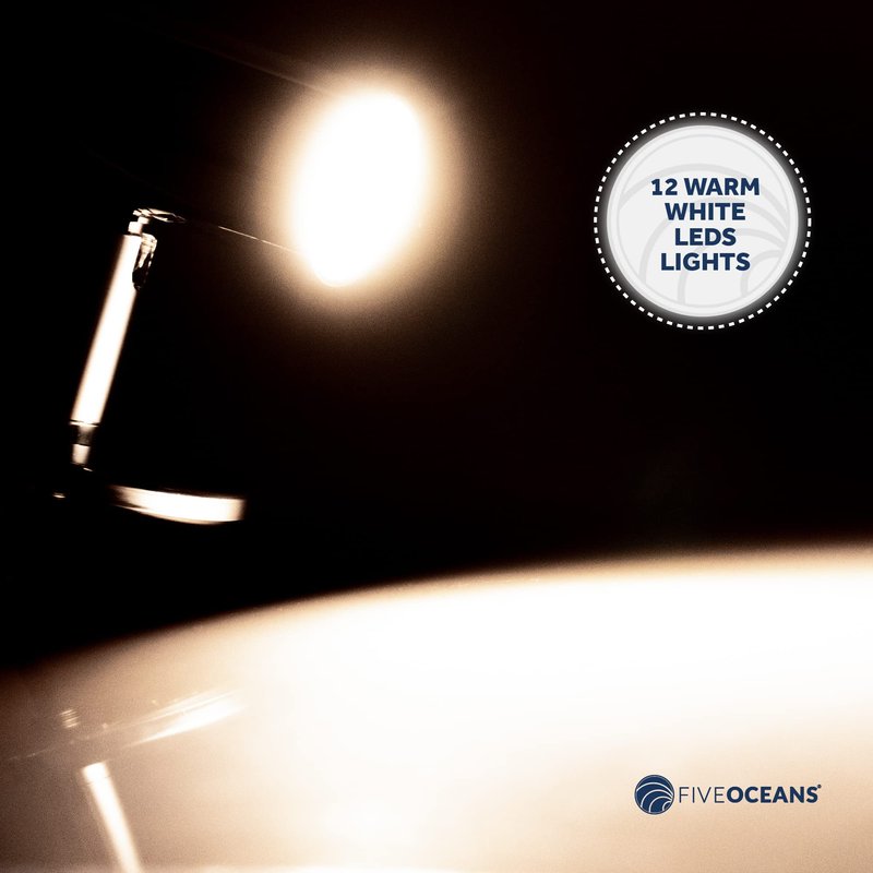 Five Oceans LED Reading Light, RV Interior Lights, LED Light Fixtures, Rocker On-Off Switch, 12-30V, Warm White LED, for RV, Boat, Camper, Motorhome, Trailer, Truck - FO3733