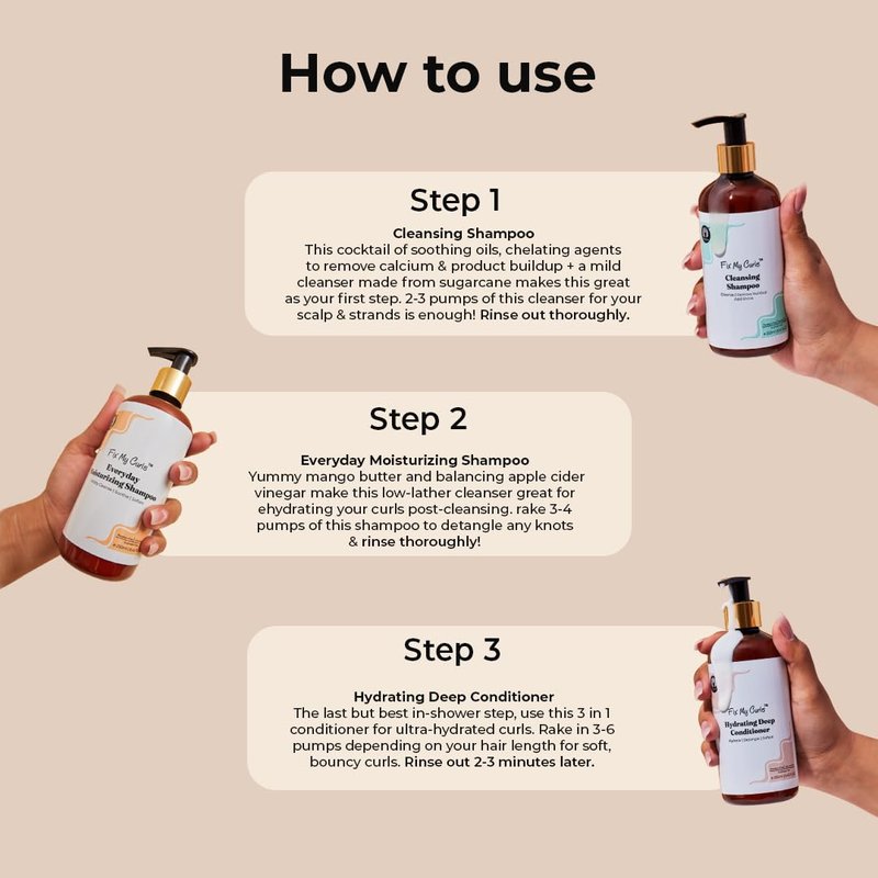 - Package Contents: 1 Everday Moisturizing Shampoo, 1 Cleansing Shampoo & 1 Hydrating Deep Conditioner