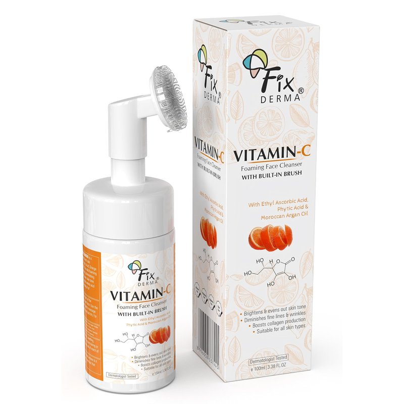 Fixderma 2% Vitamin C Foaming Face Cleanser with Brush, Face wash for Women & Men, Foaming Cleanser for skin tone, Reduces fine lines & wrinkles, Exfoliates the skin - 3.38 FL. OZ