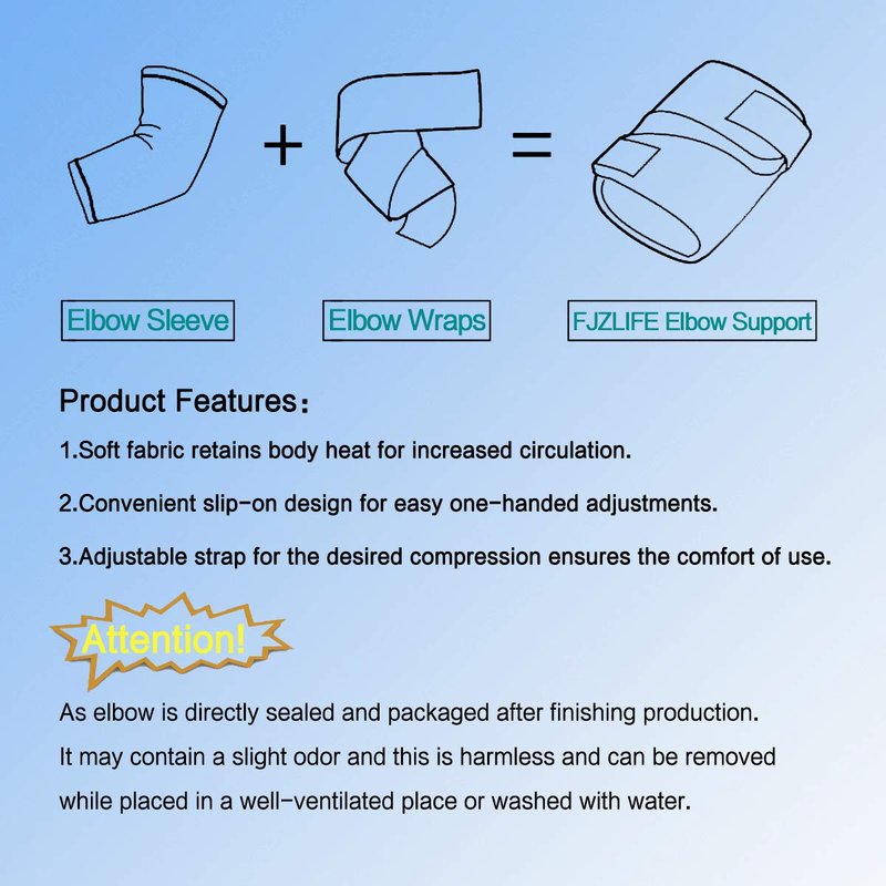 FJZLIFE Compression Recovery Elbow Sleeve &Neoprene Elbow Support/Brace. Protect Elbow During Workouts Weightlifting, Power Lifting and Cross Training, for Relief of Golfers and Tennis Elbow.