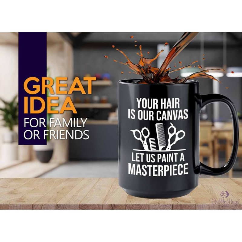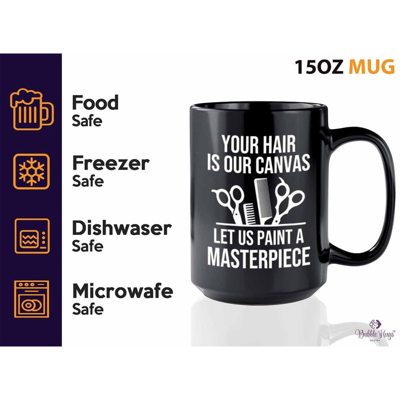 - Dishwasher and microwave friendly with ceramic material and premium Hairdressing typography design made by professional graphic designer.