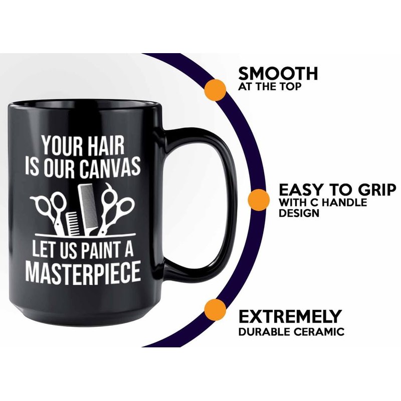 Flairy Land Hair Stylist Coffee Mug 15oz Black - Your Hair is Our Canvas - Hair Stylist Gift Beautician Hairdresser Salon Barber Hairdo Cosmetoloist Scissors Blower