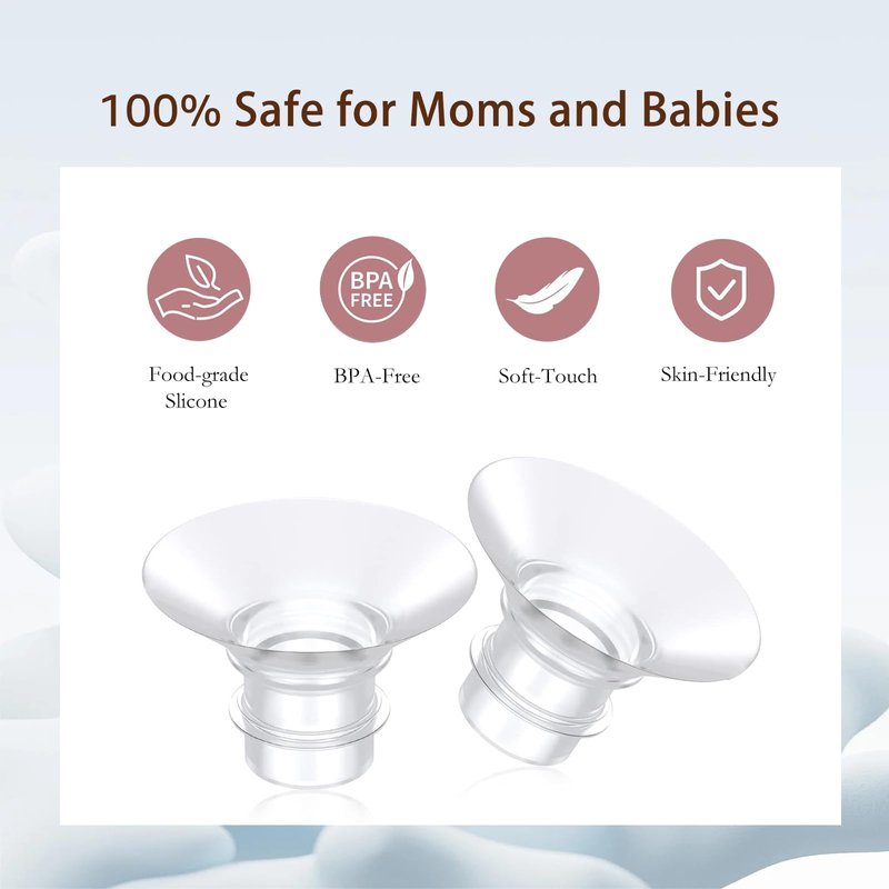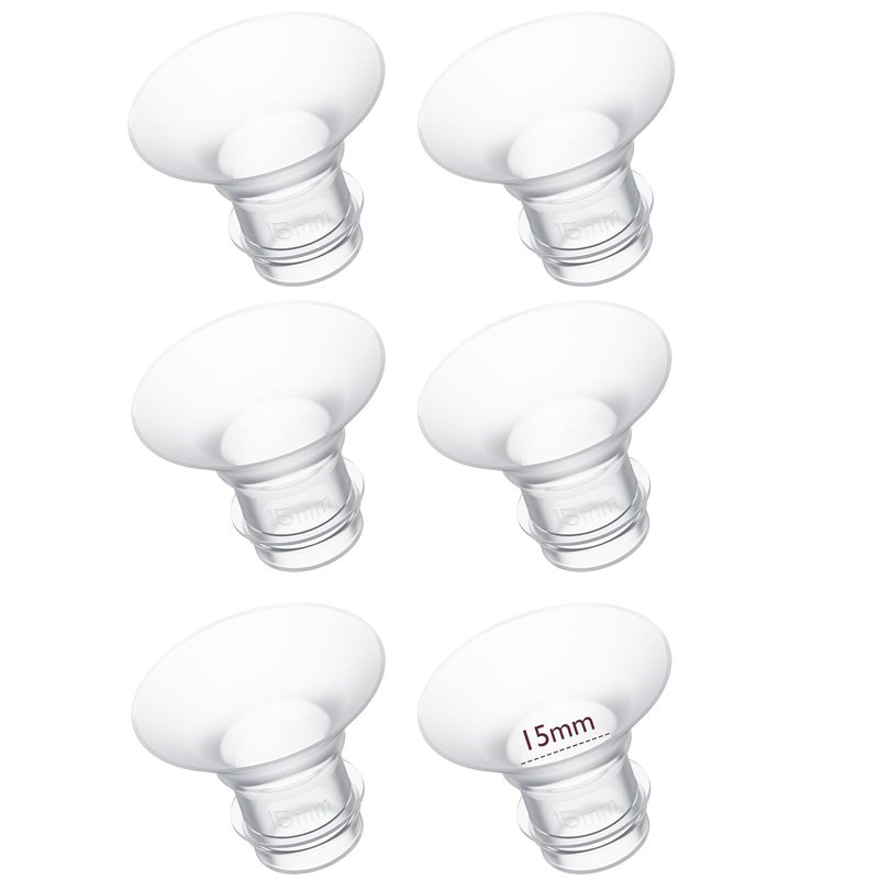 Compatibility: The Flange Inserts 15mm are breast pump accessories that can be used with most 24mm Shields/Flanges.Compatible with any S9 Pro/S12 Pro/S9/S12 wearable breast pump. (For example, compatible with Momcozy S12 Pro/S9 Pro/S12/S9 Hands-Free breast pump). Use with 24mm breast Shields for TSRETE/Medela/Spectra/Elvie/Willow/Bellaaby/Motif Luna/Ameda MYA/Ainsir/Phanpy/Lulia/NaNaLazy/Luxlady/kidzio/eulumap/Teexin/Fisroa/KISSBOBO/Goldeep/BIOBOO/Mumeasy/Nanawawa/TOVVILD/CPPSLEE and others. Attention: These breast pump accessories are only suitable for 24mm Shields/Flanges and cannot be used with other sizes of Shields/Flanges. Using coconut oil or nipple butter can reduce friction and make them easier to use. Easy Cleaning: After each use, wash the replacement pump parts with warm soapy water and rinse them thoroughly. Safety: Made of transparent silicone material,our product is BPA-free,you can use it with confidence. Replacement: The size of your flange insert is crucial for both comfort and efficient pumping. Some moms may experience nipple swelling while pumping, so it's important to monitor the appearance of the nipple during pumping. It is recommended to replace the flange insert every 1 to 2 months. Please ensure you choose the correct size.