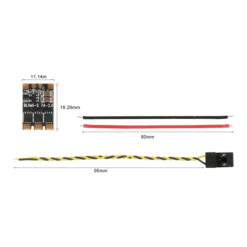 - ESC continuous current is 7A, and the instantaneous peak can be up to 10A(≤10S). The input voltage is suitable for 1~2 lipo battery