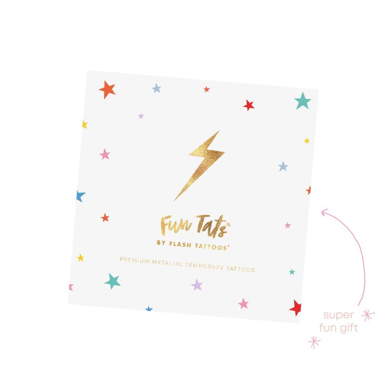 Get ready for fun times with Fun Tats by Flash Tattoos - whimsical and modern temporary tattoos designed for kids. Made with lots of love and the highest quality ingredients, Fun Tats temporary tattoos are perfect for vacations, school events, dress up, special celebrations, and everyday fun. Set up a Flash Tat application station at birthday parties. Pop a few into party favor gift bags. Decorate party décor. Ditch sugary treats during the holidays and opt for tattoo Easter egg surprises, Valentine’s gifts, Halloween treats, and stocking stuffers. The possibilities are endless. Get creative, have fun, and shine your brightest in Fun Tats by Flash Tattoos!